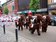 n. - A visible display; A ceremonial procession including people marching; v. - March in a procession.