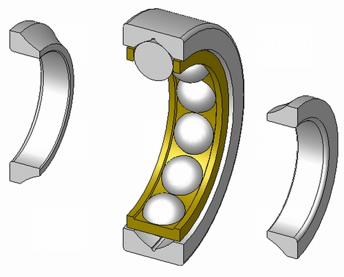 A ball bearing. Source: created by Silberwolf. http://en.wiktionary.org/wiki/File:Four-point-contact-bearing_din628_type-qj_180-ex.pngAuthor: Silberwolf