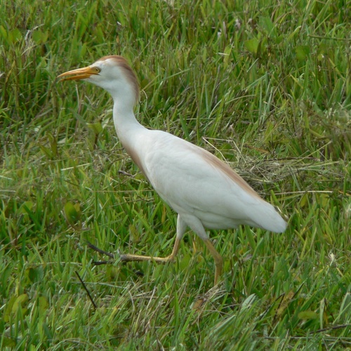 Cattle egret. Source: originally posted to Flickr as cattle egret 3. http://en.wiktionary.org/wiki/File:Cattle_Egret_(Bubulcus_ibis)_-walking2.jpgAuthor: Rick Kimpel