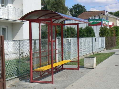 A bus stop in Poland. Source: http://en.wiktionary.org/wiki/File:Przystanek_MZK_ul._Mielczarskiego_(Bełchatów).JPGAuthor: Triskaidekafil