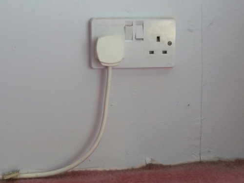 A UK domestic mains electricity 'wall socket'. Source: http://en.wiktionary.org/wiki/File:UK_BS1363_double_wall_socket.jpgAuthor: Thryduulf