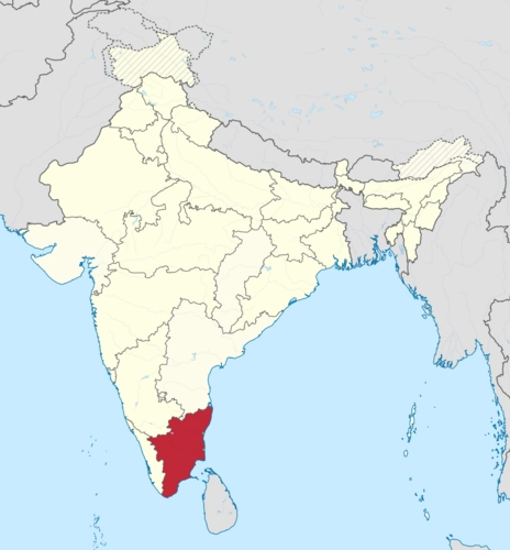Source: http://en.wiktionary.org/wiki/File:Tamil_Nadu_in_India_(disputed_hatched).svg