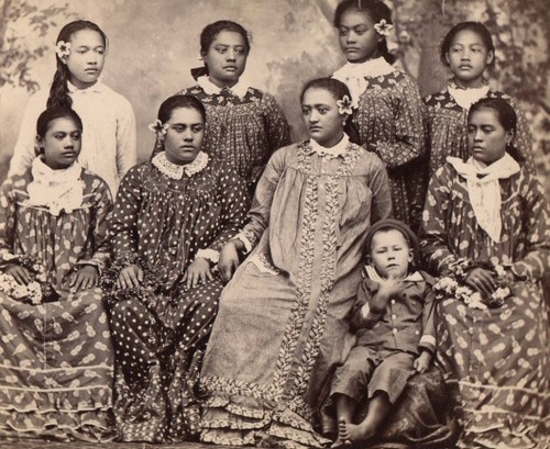 Tahitian girls in their unadorned 'Mother Hubbards' between 1880 and 1889. Source: http://en.wiktionary.org/wiki/File:Tahitiennes_en_robe_mission.jpg
