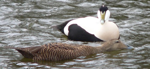 Source: http://en.wiktionary.org/wiki/File:Somateria_mollis_Paar_Weibchen_cop_best2.jpg