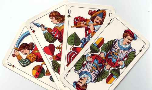 Playing cards. Source: From: German Wiktionary; original title: 'Bild:VierUnder.jpg'. http://en.wiktionary.org/wiki/File:Bild-VierUnter.jpgAuthor: de:Benutzer:Ranostaj