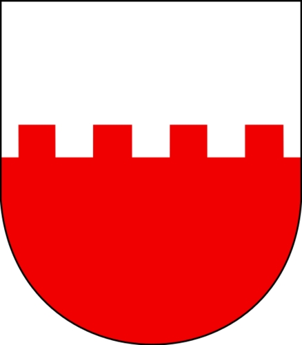 An heraldic shield divided 'per fess 'embattled'.'. Source: http://en.wiktionary.org/wiki/File:Sakarakoro.svgAuthor: Care