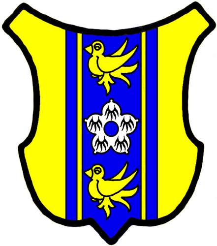 A shield with 'a pale endorsed azure' (blue pale between blue endorses). Source: http://en.wiktionary.org/wiki/File:Cottising_3_wiki.jpgAuthor: Mich Taylor