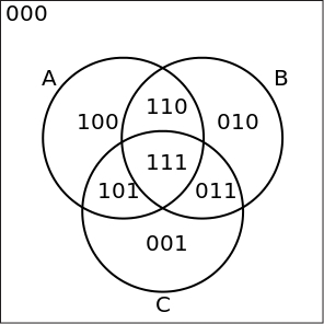 A 3-set 'Venn diagram', which is split by contours into 8 simply connected regions. Source: http://en.wiktionary.org/wiki/File:Venn3tab.svgAuthor: JohnJones