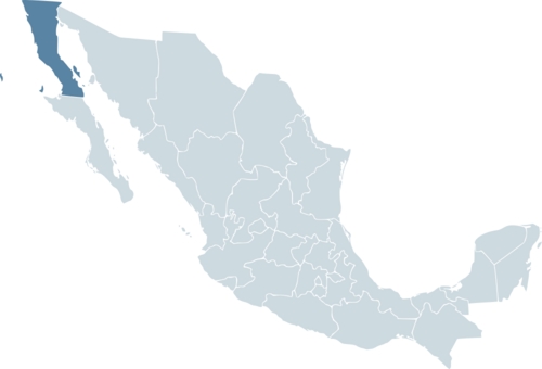 Map of [[Mexico. Source: Mexico template.svg by Mario Fuente Cid and Lokal_Profil. http://en.wiktionary.org/wiki/File:Mexico_map,_MX-BCN.svgAuthor: Lokal_Profil