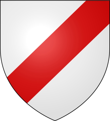 Argent, a bend sinister gules. Source: http://en.wiktionary.org/wiki/File:Bend_Sinister_demo.svgAuthor: Ipankonin