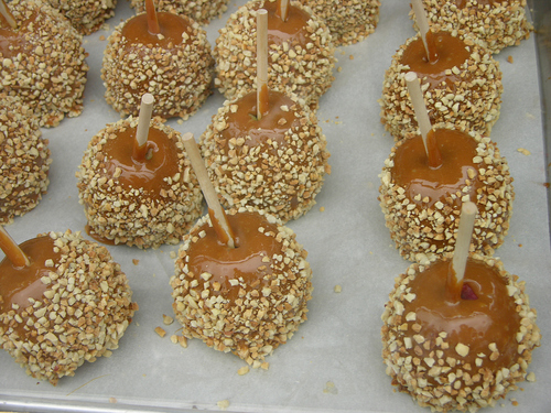 Caramel apples. Source: http://en.wiktionary.org/wiki/File:Caramel_Peanut_Candy_Apples_2592px.jpgAuthor: Photo by and (c)2006 Derek Ramsey (Ram-Man)