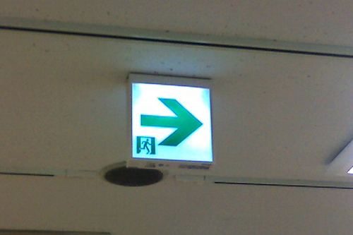 An exit sign. Source: Pieria(Uploader and Photographer). http://en.wiktionary.org/wiki/File:Exit_sign.jpgAuthor: Pieria(Uploader and Photographer)