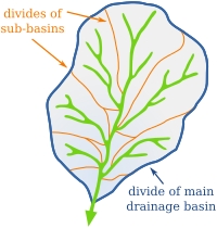 Source: Based upon an image at [1] that is a work of the U.S. federal government and therefore in the public domain. This version created by bdesham in Inkscape. http://en.wiktionary.org/wiki/File:Drainage_basin.svg