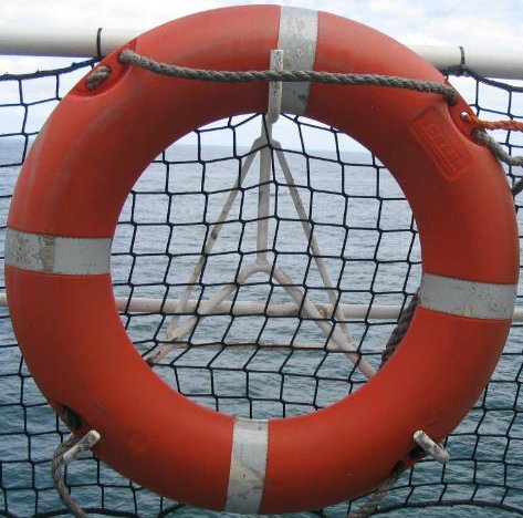 A life belt. Source: Originally from en.wikipedia; description page is/was here. http://en.wiktionary.org/wiki/File:Life_belt.jpgAuthor: Original uploader was Drw25 at en.wikipedia