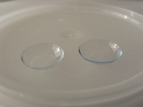 A pair of contact lenses, positioned with the concave side facing upward. Source: http://en.wiktionary.org/wiki/File:Contactlenzen_Confortissimo.JPG
