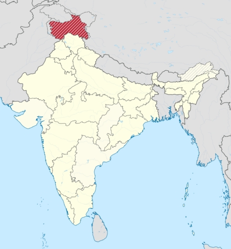 Map of the disputed territory of Jammu and Kashmir. Source: http://en.wiktionary.org/wiki/File:Jammu_and_Kashmir_in_India_(de-facto)_(disputed_hatched).svgAuthor: TUBS