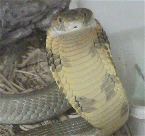 Thumb. Source: Transferred from en.wikipedia; transferred to Commons by User:Homonihilis using CommonsHelper. http://en.wiktionary.org/wiki/File:Ophiophagus_hannah2.jpgAuthor: Original uploader was Dawson at en.wikipedia