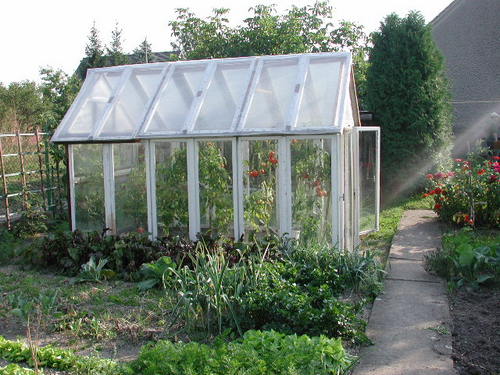 A small 'greenhouse' typical of those found in private gardens. Source: http://en.wiktionary.org/wiki/File:Gartengewächshaus.JPGAuthor: Jürgi-würgi