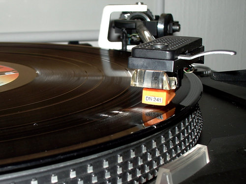 Grooves on a [[vinyl record. Source: http://en.wiktionary.org/wiki/File:Magnetic_cartridge_DUAL_DMS241.jpgAuthor: 32bitmaschine