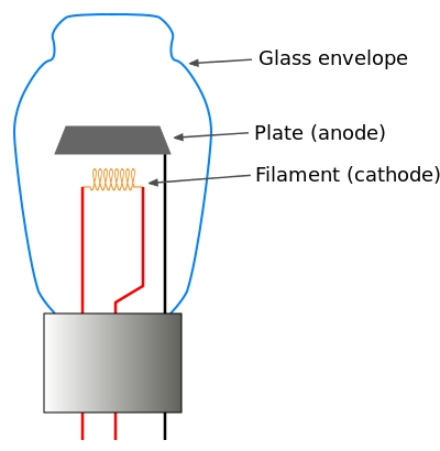 Vacuum tube. Source: based on Diode vacuum tube.png. http://en.wiktionary.org/wiki/File:Diode_vacuum_tube.svgAuthor: wdwd