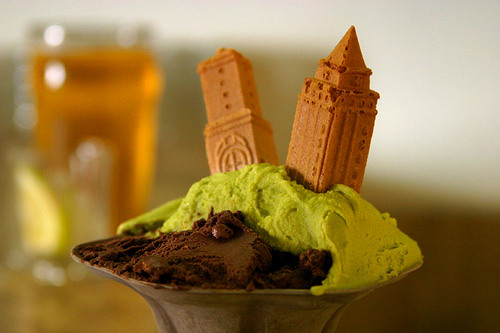 Italian Gelato, with two tower shaped biscuits. Source: [1]. http://en.wiktionary.org/wiki/File:Gelato.jpgAuthor: user:Solitude
