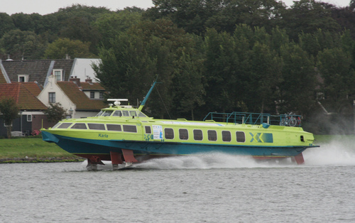 An hydrofoil running. Source: http://en.wiktionary.org/wiki/File:Fast_Flying_Ferries_Velsen.jpgAuthor: Mauritsvink