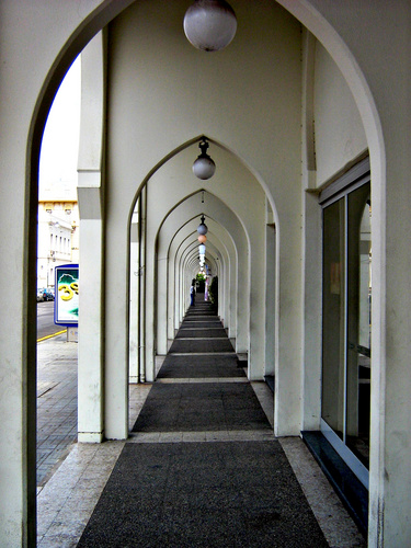 An arcade covering a [[sidewalk. Source: my. http://en.wiktionary.org/wiki/File:Tripoli_Sidewalk.jpgAuthor: Victor Korniyenko
