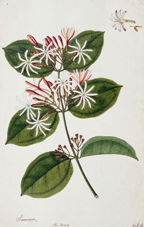A 19th-century [[watercolour. Source: http://en.wiktionary.org/wiki/File:Jasminum;_Akar_Benang;_Pokok_Akar_Banang_(William_Farquhar_Collection,_1819–1823).jpg