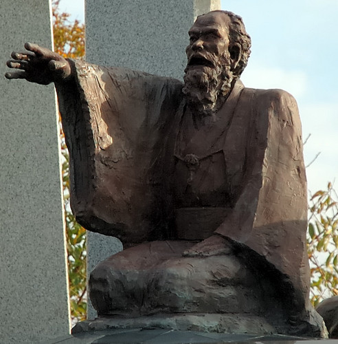 A statue of a man kneeling. Source: photo taken by Kropsoq. http://en.wiktionary.org/wiki/File:Kobayashi_Torasaburo_Statue_001.jpgAuthor: Kropsoq