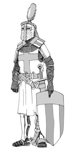 Source: the image I did myself based on the information of the books: 'Historische waffen und rüstungen' von Liliane und Fred Funcken and 'An historical guide to arms and armour' by Stephen Bull. http://en.wiktionary.org/wiki/File:13thcentury_knight_ilustration.png