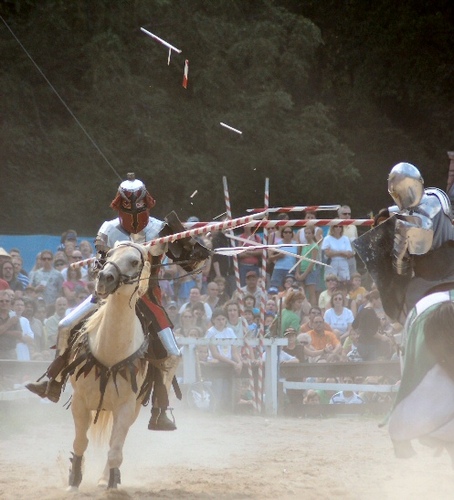 Jousters with broken lances. Source: Transfered from en.wikipedia Transfer was stated to be made by User:Storkk. http://en.wiktionary.org/wiki/File:Broken_lances.jpgAuthor: Easyv at en.wikipedia