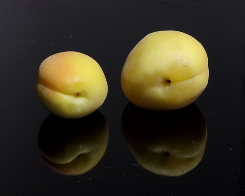 The fruit to the viewer's 'left' is smaller. Source: http://en.wiktionary.org/wiki/File:Two_angelcots.jpgAuthor: Ragesoss
