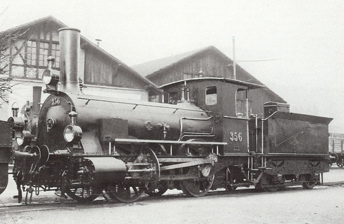 A steam locomotive. Source: (scan). http://en.wiktionary.org/wiki/File:NOB-C2-2Nr356.jpgAuthor: Autor unbekannt. Da das Bild aber älter als 100 Jahre ist ist anzunehmen das es gemeinfrei ist.