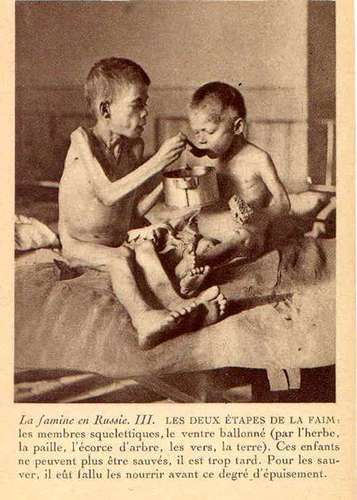 A 1922 photograph by of two boys suffering from malnutrition. Source: http://en.wiktionary.org/wiki/File:Fridtjof_Nansen,_Les_deux_étapes_de_la_faim_(1922).jpgAuthor: Fridtjof Nansen (1861–1930)Click to visit photographer's profile.