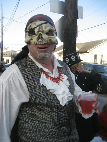 A man wearing a mask. Source: Photo by Infrogmation (talk). http://en.wiktionary.org/wiki/File:Pyrates2010JBSkull1.JPGAuthor: Infrogmation of New Orleans