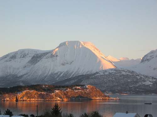 A mountain (large mass of rock). Source: http://en.wiktionary.org/wiki/File:Winter_sun_on_Norwegian_mountain.jpg