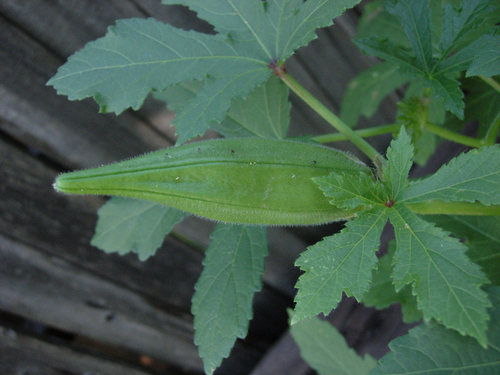 Okra plant. Source: The author on flickr is the same on the English Wikipedia.. http://flickr.com/photos/25459937@N00/264682032/. http://en.wiktionary.org/wiki/File:Okra_Growing.jpgAuthor: Joe Sala