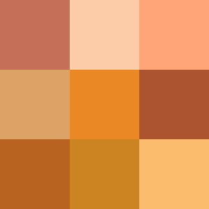 Various shades of orange. Source: Derived from File:Color_icon_orange.svg, with colors changed to reflect a broader set of 'oranges'. http://en.wiktionary.org/wiki/File:Color_icon_orange_v2.svgAuthor: Mizunoryu, Badseed, Jacobolus