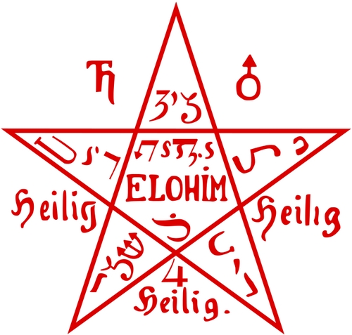 Source: Drawn freehand using Inkscape; based on an image in the online text at esotericarchives.com. http://en.wiktionary.org/wiki/File:Pentacle_from_the_Sixth_Book_of_Moses.svg