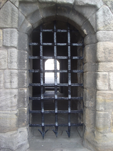 A portcullis in Stirling, Scotland. Source: http://en.wiktionary.org/wiki/File:Stirling_Castle_portcullis_dsc06571.jpg