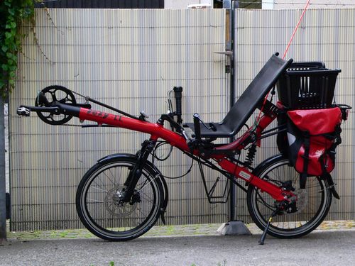 A recumbent bicycle. Source: EvaK. http://en.wiktionary.org/wiki/File:Recumbent_bicycle_Toxy_CL.jpgAuthor: EvaK
