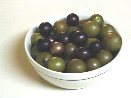 Muscadine. Source: Transferred from en.wikipedia to Commons by User:Majrjejm. http://en.wiktionary.org/wiki/File:Muscadines.Scuppernongs.jpgAuthor: Dcoetzee at en.wikipedia