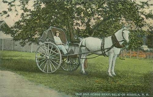 One horse 'shay', circa 1910. Source: Reproduced from an original postcard by an unknown publisher. http://en.wiktionary.org/wiki/File:Old_One_Horse_Shay.jpgAuthor: Photographer unknown