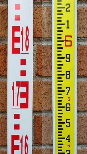A surveyors' stadia or [[level staff. Source: http://en.wiktionary.org/wiki/File:levellingrod.jpgAuthor: Michael Daly