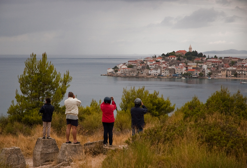 Tourists taking [[photograph. Source: http://en.wiktionary.org/wiki/File:Tourists_photographing_Primošten,_Croatia_-_20110811.jpg