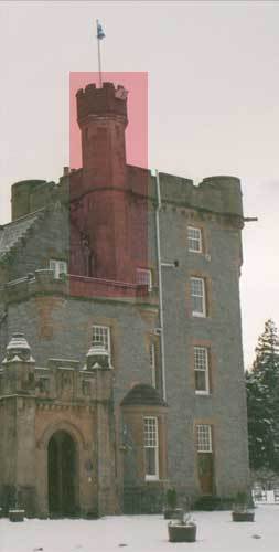 The turret '(marked in pink)' of a [[baronial. Source: http://en.wiktionary.org/wiki/File:Turret_(architecture)_1.jpg