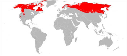 Geographic distribution of 'wolverines'. Source: Based on BlankMap-World6.svg. http://en.wiktionary.org/wiki/File:Gulo_gulo_levila.pngAuthor: et:User:Iifar