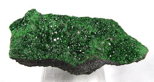 Trimphone, viewed from the side. Source: http://en.wiktionary.org/wiki/File:Uvarovite-278488.jpgAuthor: Rob Lavinsky / iRocks.com DescriptionClick to visit photographer's profile.