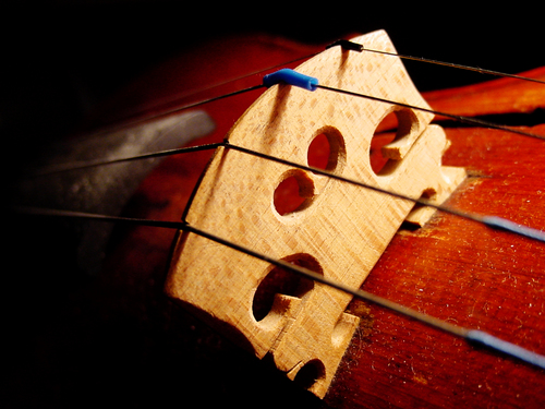 The bridge of a violin. Source: The Violin: Bridge. http://en.wiktionary.org/wiki/File:Violin_bridge.jpgAuthor: Adam Shaylor from Portland, United States