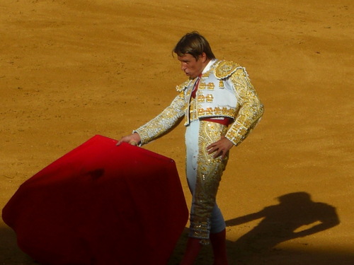 A matador with his muleta. Source: http://en.wiktionary.org/wiki/File:El_cordobes_en_las_Colombinas_2008_en_Huelva.JPGAuthor: Codorado